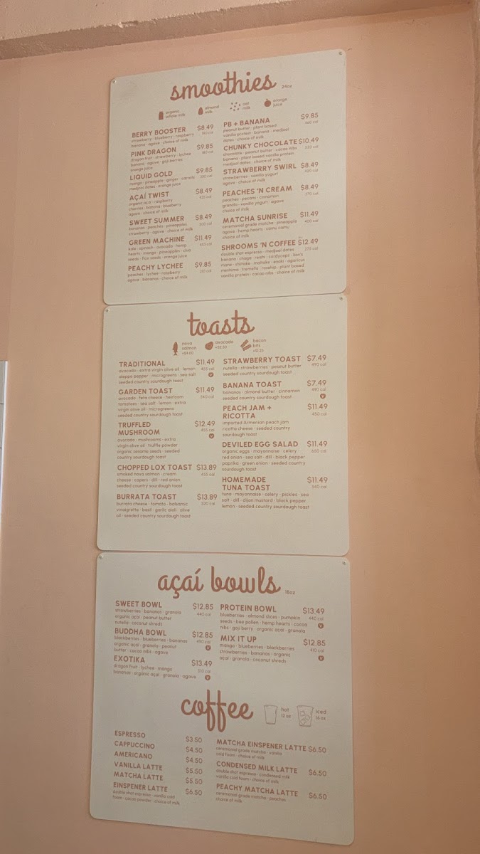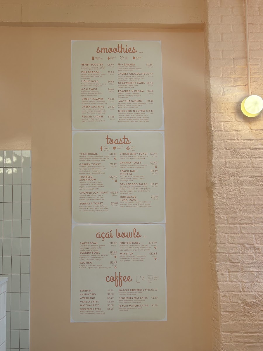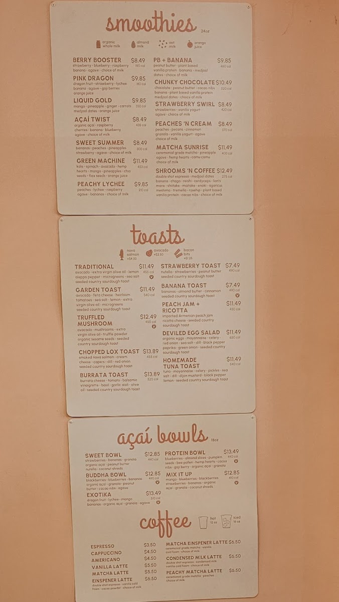 Beyond smoothies, the café excels in their artisanal toasts. Indulge in their classic Chopped Lox Toast, adorned with smoked nova salmon and a zesty touch of dill, all perched atop seeded country sourdough for a delightful crunch at $17.39. For a vegetarian option full of flavor, the Traditional Toast is a must-try, boasting a rich combination of creamy avocado topped with a sprinkling of microgreens and farmhouse freshness for just $14.39.